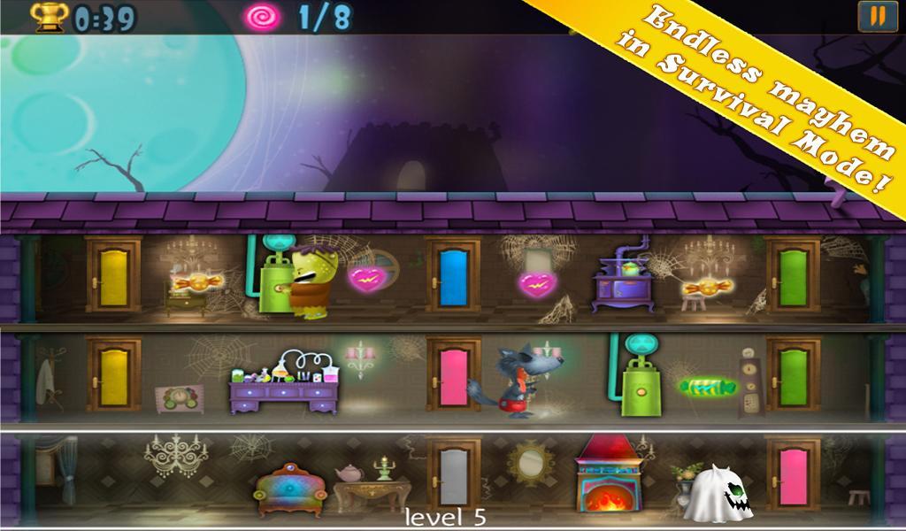 Play as Harry, a candy-obsessed boy whose sweet tooth has lead him into a haunting dilemma! Guide him through over 40 levels of mayhem and a never ending survival mode so that he can collect the bounty of a lifetime! Spooky Treats is fun for all ages. The amazing art is family friendly and non-violent, a perfect game to play with the whole family this Halloween.